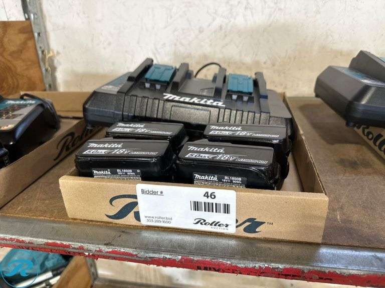 LOT 46 - Makita DC18RD Dual Port Charger with (4) BL1850B 18V 5.0Ah Batteries