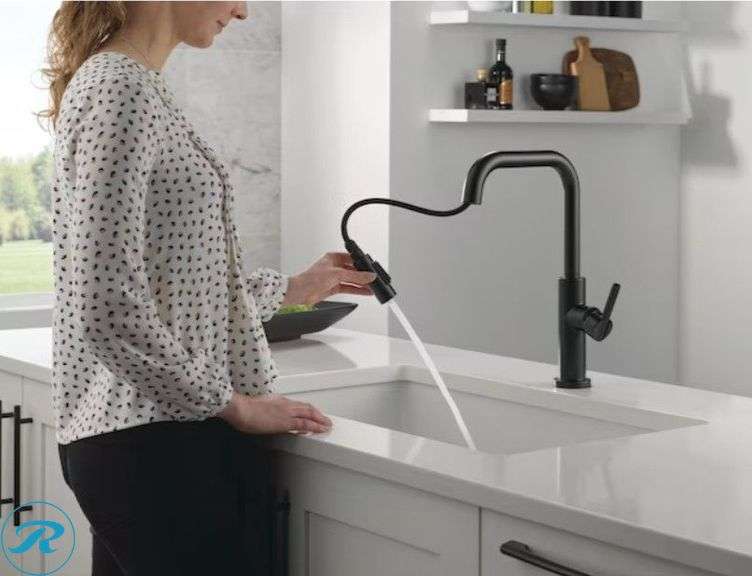 (1) New Delta Nicoli Black Single Handle Deck-mount Pull-down Kitchen Faucet with Sprayer (Includes Deck Plate)